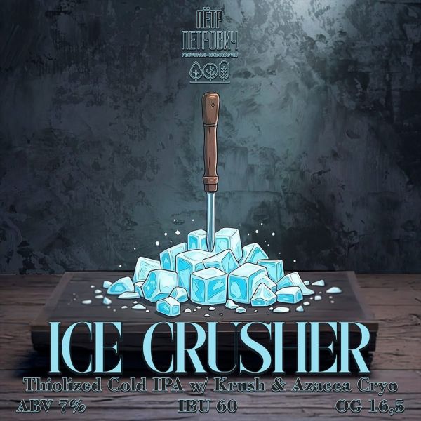 Нож для колки льда, он же Ice Crusher, был широко распространён в начале XX века. Постепенно современные холодильные установки вытеснили его из барного обихода. «Пётр Петрович» — не только пивоварня, но и ресторан, поэтому было решено отдать дань этому ранее незаменимому инструменту, который особенно спасал заведения в жаркий сезон, ведь он как раз вот-вот наступит.
