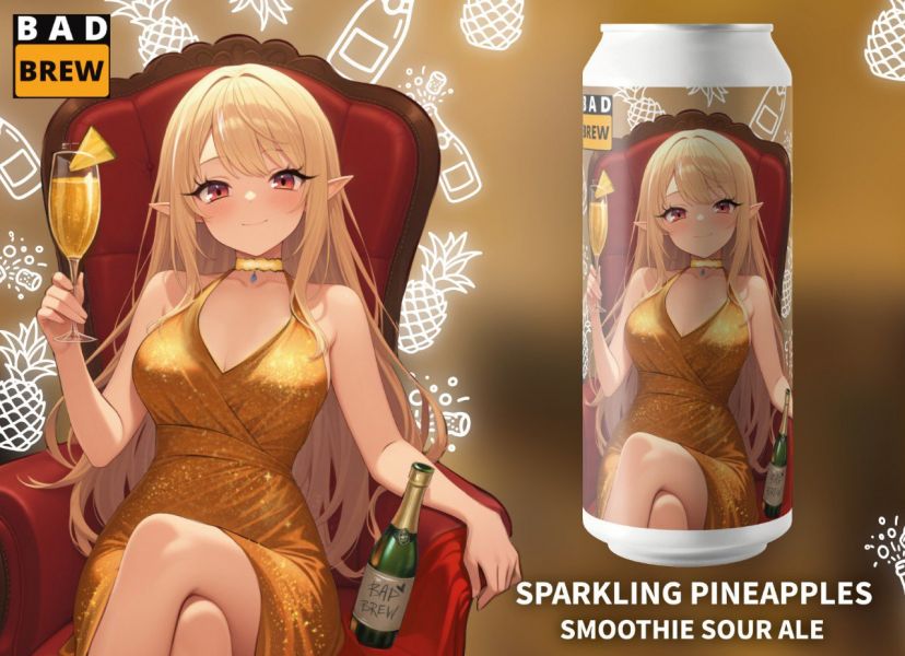 Изысканный саур-эль, облачённый в золотисто-янтарное сияние, соблазняет с первого взгляда — как шёпот игристого в тишине заката. Его аромат — сочный ананас, нежный цветочно-виноградный нюанс и свежая цитрусовая искра, будто поцелуй утренней росы. Во вкусе — бархатистое пюре спелых ананасов, обволакивающее язык, с игривой кислинкой и лёгкой газацией, напоминающее игривое прикосновение. Каждый глоток — чувственный диалог сладости и свежести, оставляющий на губах томное послевкусие и жажду продолжения. Этот саур-эль не утоляет жажду — он пробуждает желание.