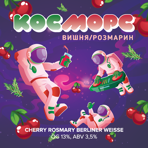 Кисленький, освежающий и прохладный новый берлинер-вайссе с пюре вишни и розмарином. Производители верят, что когда-нибудь «Космос» войдёт в рацион космонавтов.