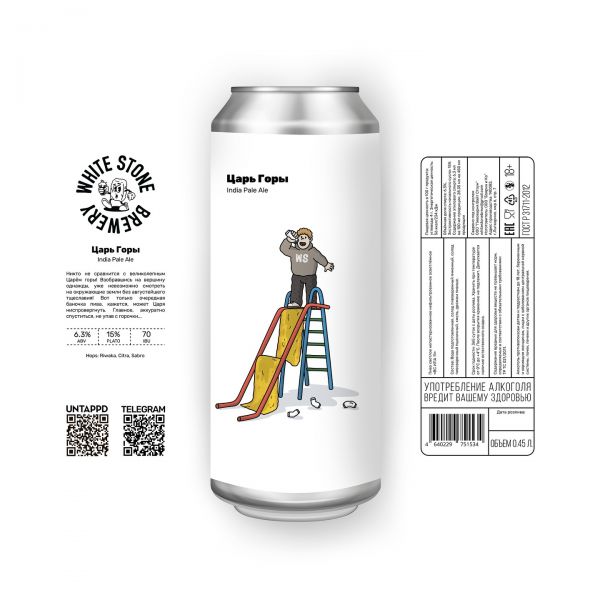 Никто не сравнится с великолепным Царём горы! Взобравшись на вершину однажды, уже невозможно смотреть на окружающие земли без августейшего тщеславия! Вот только очередная баночка пива с хмелями Riwaka, Citra и Sabro может Царя ниспровергнуть. Главное — аккуратно спуститься, не упав с горочки...