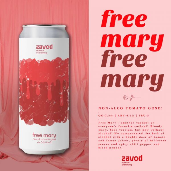 Еще один вариант всеми любимого коктейля Bloody Mary, в его пивной ипостаси, но теперь и безалкогольной! Отсутствие градуса пивовары компенсировали двойной дозой томатного и лимонного соков, обилием различных соусов и остротой перцев чили и черного!