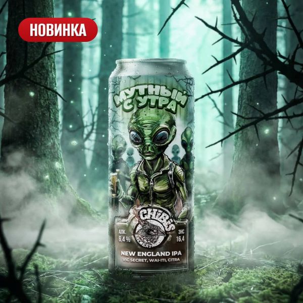 Австралийский хмель Vic Secret, новозеландский Wai-iti и американский Citra создали вкусоароматику свежих цитрусов, ананасов, абрикосов и персиков с нотками сосновой хвои. Почему с утра и откуда на этикетке взялись зеленые существа — даже не спрашивайте, это дело мутное.