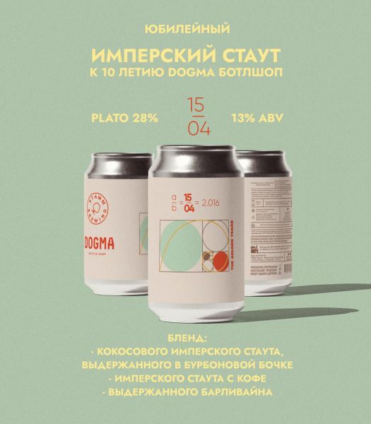 Специально к первому юбилею ботлшопа Dogma собран праздничный купаж кокосового имперского стаута, выдержанного в бурбоновой бочке, имперского стаута с кофе и барливайна.