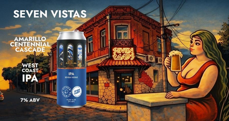 Классический American IPA, охмеленный Amarillo, Cascade, Centennial, сваренный ко Дню Рождения наших друзей из Тбилиси, бара "Seven Roads"