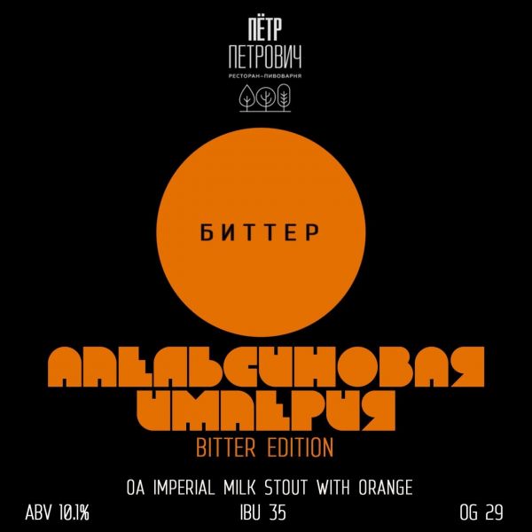 Новая версия «Апельсиновой Империи», настоянная на щепе американского дуба, которую выдержали на биттере «Пётр Петрович».