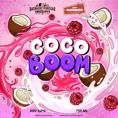 COCO BOOM — яблочный сидр с добавлением сока малины и кокосового молока. Настоящий вихрь яркого вкуса и аромата!