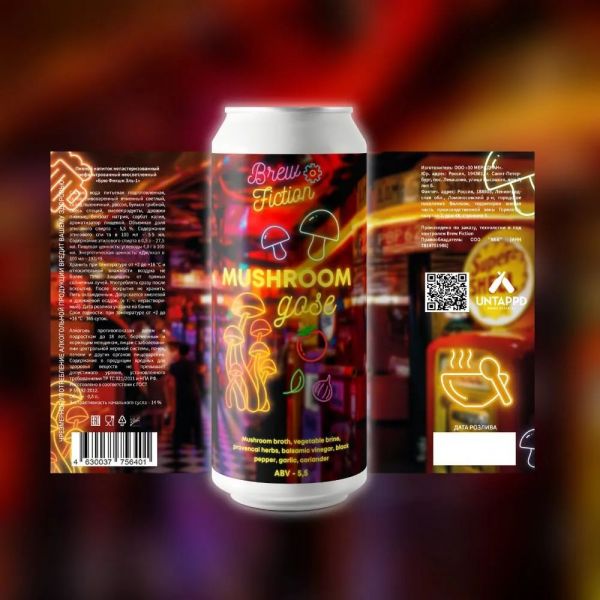 Гозе с добавлением грибного бульона, овощного рассола, кориандра, сладкой паприки, чеснока, бальзамического и яблочного уксуса, чёрного перца, прованских трав, гималайской соли.
