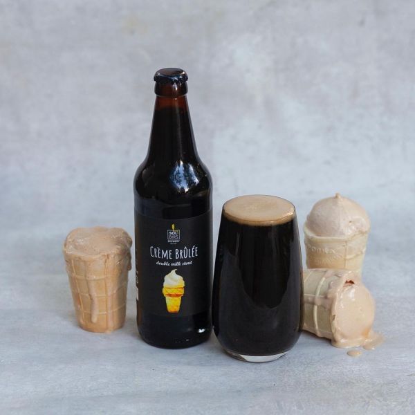 Знакомый с детства десерт крем-брюле, спрятанный в двойном молочном стауте. Десертный напиток с карамельно-солодовой базой и мягким сливочным ароматом. Сладко, ванильно, карамельно — как десерт из детства.