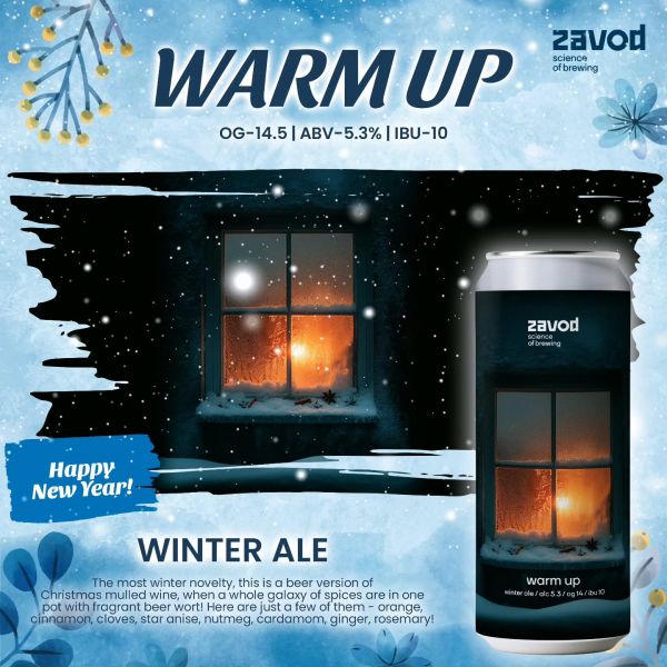 Самая зимняя из всех новинок, эдакий пивной вариант рождественского глинтвейна, когда в одном котле с ароматным пивным суслом оказываются целые плеяды пряностей! Вот лишь некоторые из них: апельсин, корица, гвоздика, бадьян, мускатный орех, кардамон, имбирь, розмарин. Warm up – праздник к нам приходит!