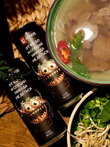 Насыщенный, чуть солёный гозе. Выраженный, пряный вкус и аромат наваристого бульона фо бо, с нотами лука, чеснока, кайенского перца, кинзы, имбиря и соевого соуса.