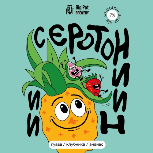 Свежий апдейт в линейке «Серотонин» — пышный десертный смузи-саур с гуавой, клубникой и ананасом. По сравнению с классической версией, ананас добавляет больше свежести и хрусткости, делает пиво менее «конфетным» и более освежающим.
