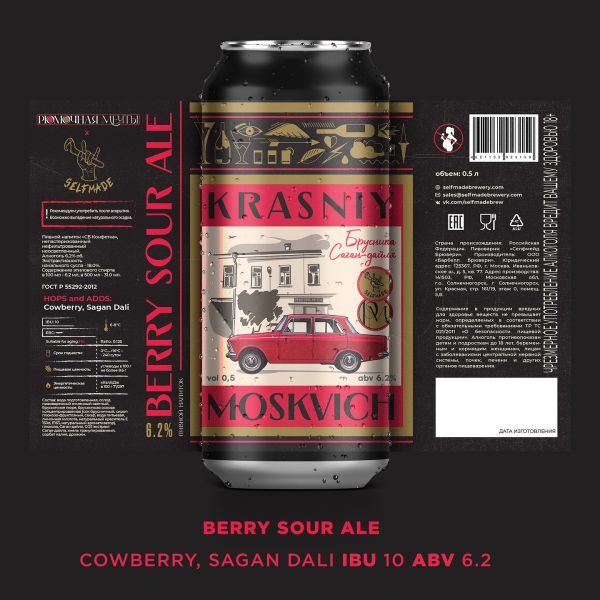 Отставить ностальгические слезы, товарищ! Прогресс нам не помеха порадовать простого советского человека. Для всех нуждающихся — новая модель знаменитого «Москвича» в красных тонах, разработанная в союзе с «Рюмочной Мечты». Знаменитая настойка воплотилась в одноименный пивной твист, в котором сочетаются проверенный временем колорит и экспериментаторский дух. В данной комплектации этот аппарат обладает нежным брусничным вкусом и ароматом с терпкой ноткой саган-дайля.