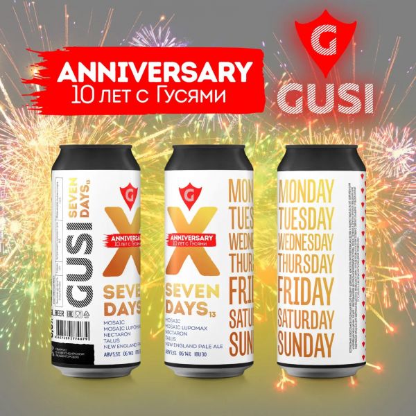 Пивоварня GUSI отмечает десятилетие серией праздничных сортов, которую открывает тринадцатая версия пейл эля на каждый день. Легкая солодовая база, овсяные хлопья, двойное сухое охмеление Mosaic, Mosaic Lupomax, Nectaron и Talus.