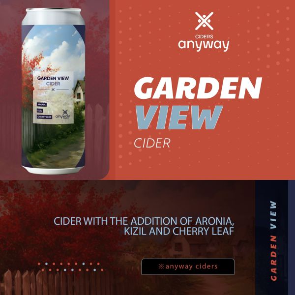 Сидр с добавлением соков черноплодной рябины и кизила, а также экстракции вишневого листа. Получился терпкий, с легкой кислинкой, в меру вяжущий напиток с насыщенным послевкусием. Garden view — это вид на сад, который радует глаз и греет душу!