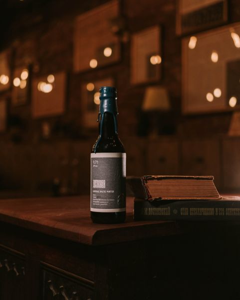 Имперский балтийский портер, выдержанный год в бочках из-под коньяка. Его плотный, насыщенный вкус, как и творчество автора, сочетает тягучую горечь с проблесками неизбежной сладости. Этот черный эликсир таит глубокие и сложные ноты в каждом глотке.