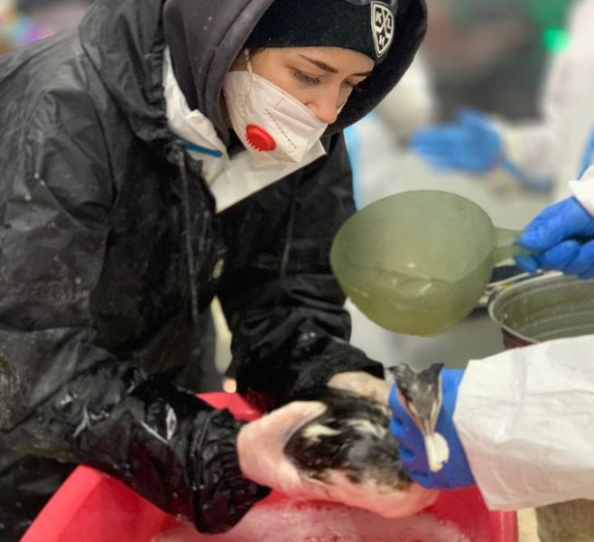 — За четыре дня работы на пляже я сорвала спину и занялась мойкой птиц. В Витязево птицами занимались два штаба. Наш располагался на автомойке, которую предоставил волонтерам местный житель Артем. Он только открылся и, по сути, пожертвовал своей первой прибылью ради важного дела. У нас была отдельная категория волонтеров, которые отлавливали и доставляли «пострадавших». К нам поступали чомги, краснокнижные гагары, бакланы, лебеди. Последних, правда, было очень мало: через наши руки прошел всего один.