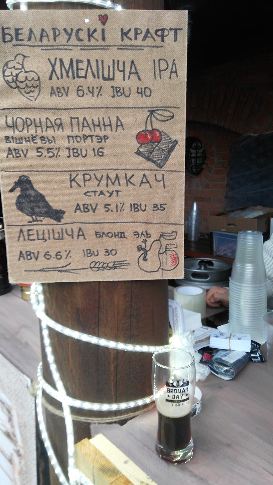 В Витебске можно было вполне спокойно приобрести пиво и закуски, пообщаться с продавцами, среди которых было немало сотрудников и пивоваров от практически всех белорусских пивоварен, пытающихся варить крафтовое пиво: контрактная «Brew Team», «TRYE Beer», рестораны-пивоварни «Друзья», «Пиплс» (все – Минск), «Лямус» (Витебск), «Чисто пивной ресторанчик» (Гомель), «13 Litar» (Брестский район).