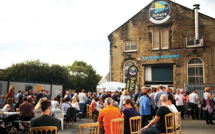 Импровизированный тапрум Saltaire на заднем дворе пивоварни, на берегу канала, — это воплощение подхода пивоварни, благодаря которому она быстро завоевала рынок: спокойная уверенность в себе и приземленное внимание к местному сообществу.