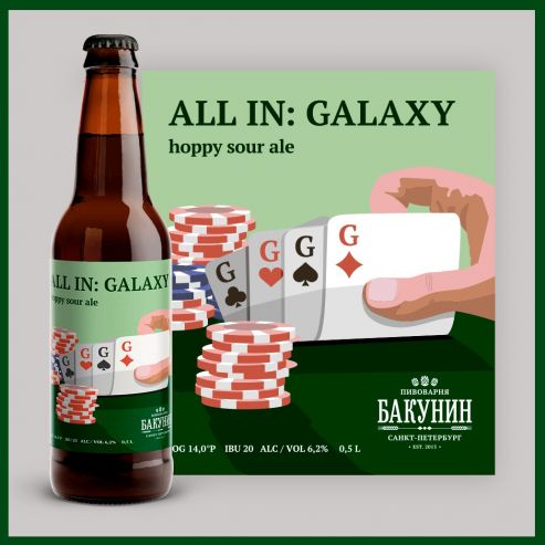 Четвертый сорт в покерной single hop линейке «Бакунина» All In. В аромате на первый план выходят цитрусовые, дополненные оттенками манго и маракуйи, а во вкусе видна характерная для sour элей кислинка.