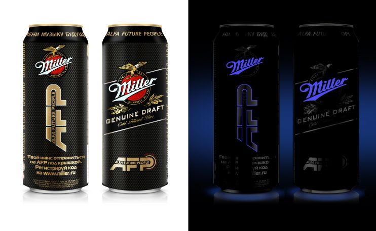 Для бренда Miller разработали ограниченную стильную серию банок, которые поступили в продажу с 1 июня — под УФ-лучами надписи на них загораются неоновым светом. Выглядит интересно, вполне в стиле электронной музыки.