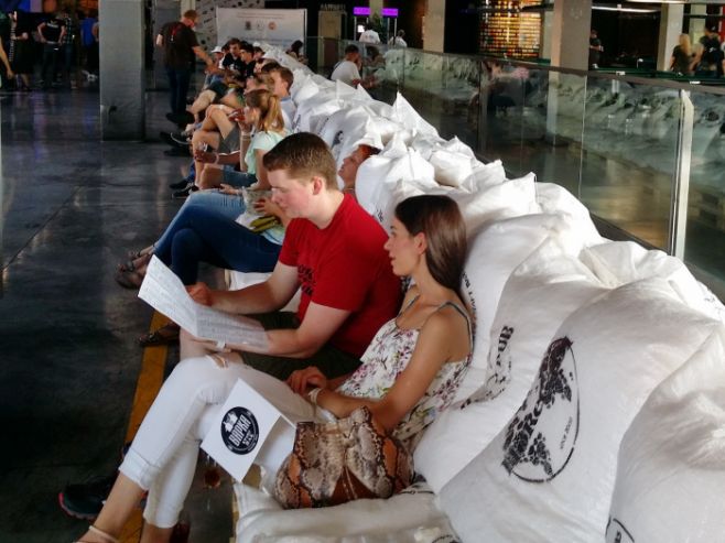 «Состав участников, представленные сорта, организация. Проход к стойкам свободный, мойки стаканов удобны, докупить жетонов — никаких проблем. Куча места для «посидеть». Идея с мешками — супер!»