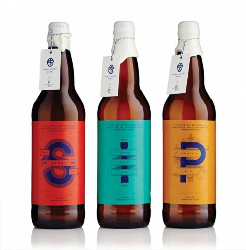 Изящный дизайн канадского пива от дизайнеров Underline Studio. Каждый сорт пива обозначается заглавной буквой (S – стаут). Вокруг буквы аккуратно прорисована лента с названием напитка.