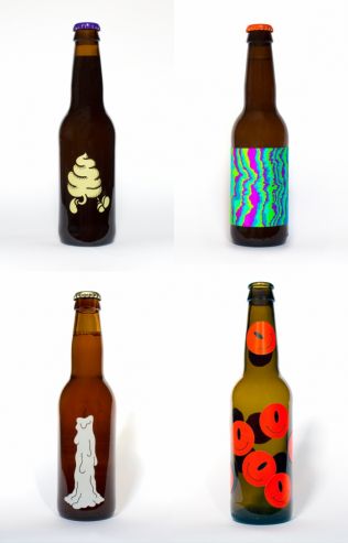 Никаких этикеток, никакого скучного текста. Просто крупные иллюстрации, нарисованные на стекле. Например, спешащая куда-то какашка. Или горящая свеча. Действительно оригинальный дизайн от Карла Грандина.