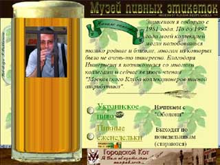 Вообще, большинство страниц о пиве создавали в то время именно коллекционеры пивной атрибутики, очевидно, из-за того, что у них было что на них публиковать – свои коллекции (этикеток, пробок и прочего). Пожалуй, самая интересная страничка из посвященных пивным этикеткам (в литературном плане) – сайт под названием «Пивная страничка Beermana», созданный Антоном Осечинским. Здесь главное не только значительное число приведенных этикеток из коллекции автора, здесь главное – комментарии! Это целые эссе, посвященные деталям дизайна столь любимых автором этикеточек. Эта страница сейчас доступна в «Архиве сайтов» nuBO.ru.