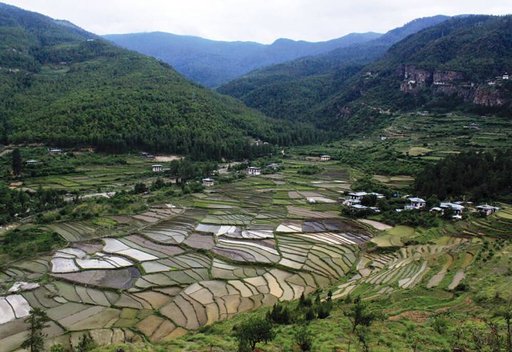 Тишина, а затем — чириканье птиц. На ветру развеваются несколько знамён с текстами молитв. Это всё, что вы слышите, когда въезжаете в восточный Бутан из Индии. Это так же поразительно, как перейти из шумного мегаполиса в заповедник. В некотором роде, это вы и делаете, входя в это горное буддийское царство. Действительно, более 40% территории страны составляют заповедники: от тропических джунглей на юге до могучих вершин Гималаев на севере. Всё это располагает к восприятию этой страны как мифического края Шангри-Ла.