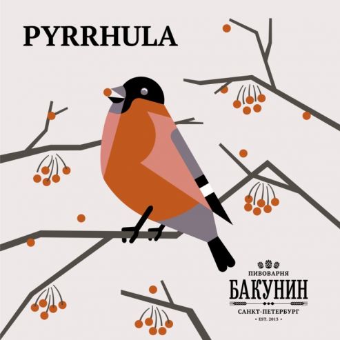 «В этот раз мы сварили gose на основе калины, что дало яркие ягодные ноты в аромате. Цвет Pyrrhula напомнит вам оперение северной птицы, а его кисло-солёный вкус сливается в шумную трель с лёгкой горчинкой красных плодов».
