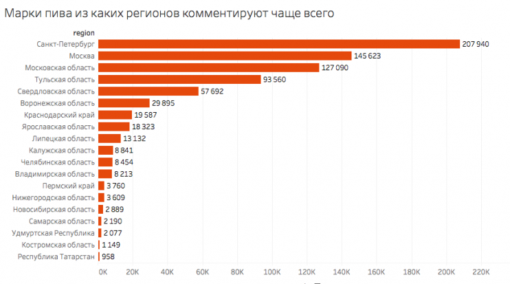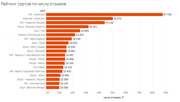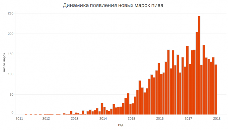 – С Untappd мы взяли число оценок каждой марки пива, что решило проблему с «мертвыми» марками, которые уже не производят. В ходе визуализации мы оставили только те марки, у которых число оценок больше 150, – объясняют разработчики гайда.