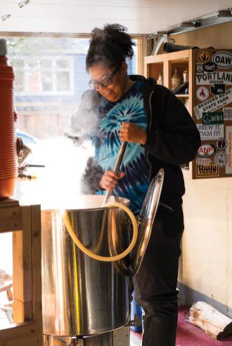 Среди её недавних варок – устричный стаут, шипучее пиво в бельгийском стиле, напоминающее шампанское, а также пиво со свежим хмелем из её сада.
