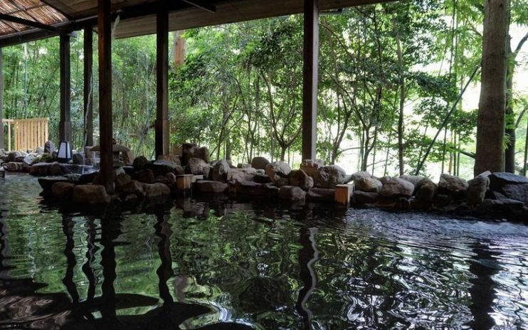 С одной стороны комнаты, вымощенной камнем, располагаются душевые – с табуретами, вёдрами и мылом, которым нужно помыться до и после купания в онсэне. С другой стороны – несколько ванн — офуро — разной глубины и один большой открытый бассейн, окружённый бамбуком и вулканическими камнями. В середине комнаты – пивной онсэн, новинка для Японии. Он очень популярен у туристов, посещающих этот удалённый курорт.