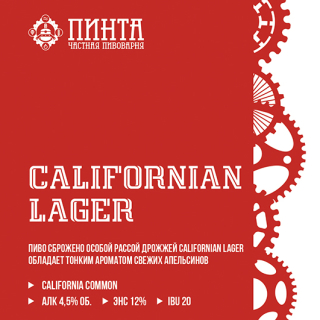 Умеренный хмелевой ароматом с тонкими нотками карамельных апельсинов. Богатый солодовый вкус с выраженной хмелевой горечью. Пиво сброжено на особой расе дрожжей Californian Lager, обеспечивающих низовое брожение при высоких температурах.