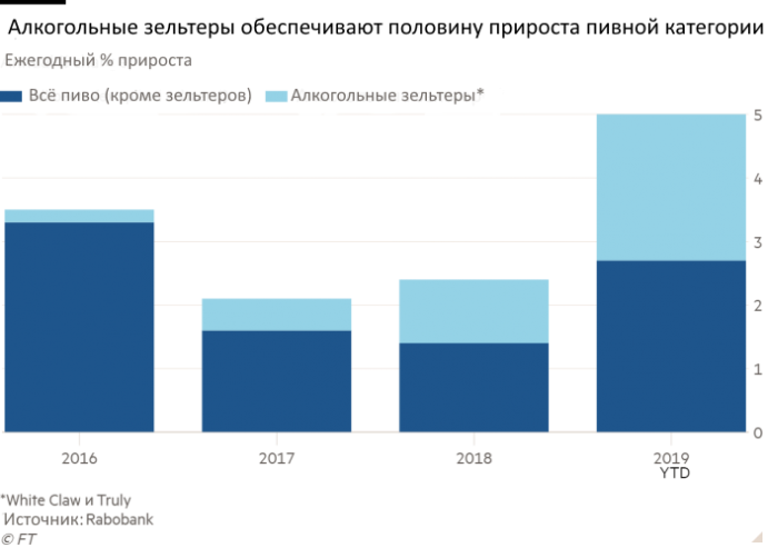 Anheuser-Busch InBev и Constellation Brands признали, что этим летом продажи пива сократились из-за повального увлечения зельтером. AB InBev заявила, что в третьем квартале текущего года продажи гиганта снизились в США на 0,85%.