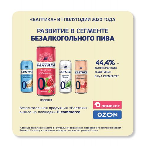 Доля компании в сегменте безалкогольного пива, по данным Nielsen, составила 44%. Реагируя на растущий спрос в канале онлайн-торговли, «Балтика» начала продавать свою безалкогольную продукцию в интернет-магазинах, приступив к сотрудничеству с компаниями «Утконос», «Самокат» и «Озон». Кроме того, компания обновила дизайн безалкогольной линейки.