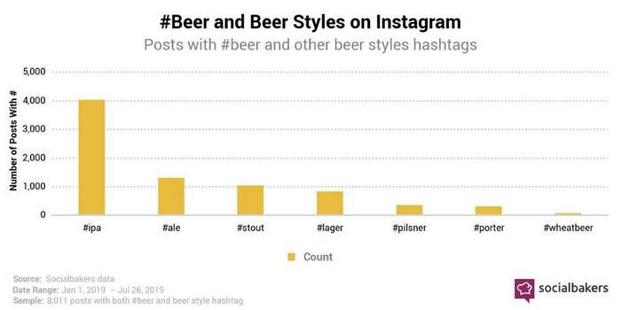 Socialbakers рассмотрели самые известные бренды пива, такие как Bud Light, Budweiser, Carlsberg, Corona, Guinness, Heineken, Hoegaarden, Paulaner, Pilsner Urquell, Stella Artois, и проверили, используются ли соответствующие хэштеги. Самым популярным тегом стал #corona.