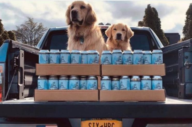 Два золотистых ретривера, Бадди и Барли, помогают хозяевам пивоварни Six Harbors на Лонг-Айленде осуществлять доставку пива во время карантина.