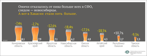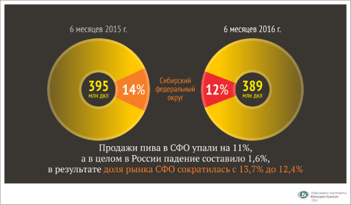 В Сибири рынок пива по итогам шести месяцев 2016 года упал на 6,8% по сравнению с аналогичным периодом прошлого года (данные Nielsen), потребление пива сократилось с 40 до 37 литров на человека в год (средний общероссийский показатель — 50 л на человека в год по итогам 2015 года). Негативный тренд пивного рынка усиливается дополнительными законодательными ограничениями, которые либо уже приняты, либо инициированы в ряде регионов и ориентированы прежде всего на ограничение продаж пива. В нынешней сложной экономической ситуации пиво все в большей степени становится недоступным для потребителей в связи с ростом цен и снижением покупательской способности, в отличие от крепкого (зачастую контрафактного) алкоголя. Это противоречит Концепции государственной политики по снижению масштабов злоупотребления алкоголем и профилактике алкоголизма среди населения Российской Федерации на период до 2020 года. Пиво является напитком с небольшим содержанием алкоголя. В большинстве стран для слабого алкоголя и пива действует отдельное регулирование, в зависимости от содержания алкоголя. Для выполнения целей правительства РФ по снижению злоупотребления алкоголем необходимы меры для смещения потребления в сторону слабого алкоголя. Такое смещение невозможно при уравнивании слабого и крепкого алкоголя и при усилении регулирования для пива.