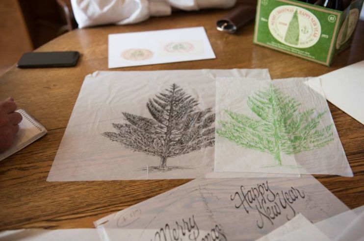 Каждое дерево за последние 45 лет с чем-то связано, и ни одно из них не повторяется дважды (за исключением 40-й годовщины, когда Беркхарт предложил Ститту повторно нарисовать гигантскую секвойю, которая была на той самой единственной этикетке, которую рисовал не он).