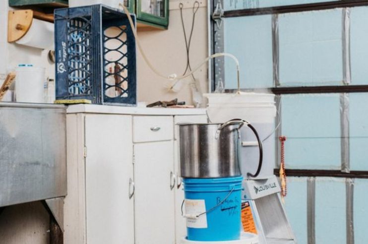 Внутри Папазян установил стеклянный терморегулируемый шкаф и сделанную на заказ холодильную камеру со стенками, покрытыми 15-сантиметровым слоем пенопласта. Его он раздобыл на закрывшейся индюшачьей ферме. Он не стал убирать верстак, оставил несколько шкафчиков и добавил несколько полок для хранения ведер с ячменным солодом, рисом и дрожжами, стеклянных бутылей, шлангов и шумовок для вылавливания вываренного зерна. Хмель же Папазян хранит в морозильной камере.