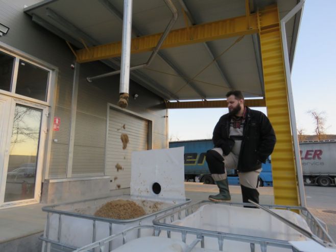 — Наша задача — засыпать в бункер дробилки солод, после чего вся варка происходит в автоматическом режиме, — рассказывает Денис. — Дробленый солод шнеком подается в предзаторник, далее в заторный котел, автоматически происходят затирание, фильтрование и кипячение, а дробина по специальному трубопроводу выгружается на улицу. Нам остается только принять сусло в бродильный цех.