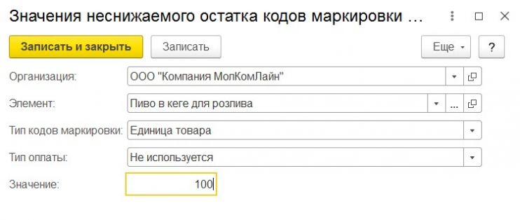 Документ может быть сформирован как вручную, так и с помощью функционала контроля неснижаемого остатка. Во втором случае система проверяет свободные коды маркировки и автоматически заказывает необходимое количество исходя из заданных параметров неснижаемого остатка.