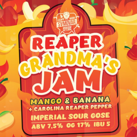 Новая версия нашумевшего бабушкиного варенья Grandmas Jam – самое большое количество пюре манго в истории российского крафта. Гималайская розовая соль и деликатное количество пюре банана, а также один из самых острых перцев в мире — Carolina Reaper!