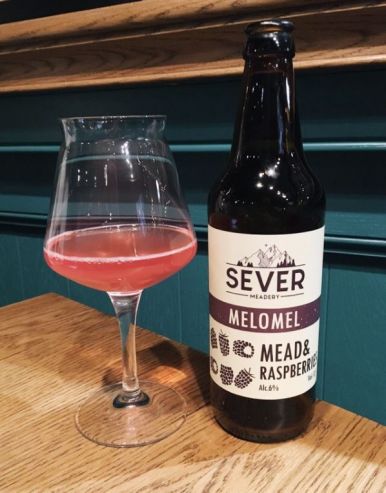 Меломель из свежего лугового мёда с соком натуральной малины сброжен винными дрожжами. Получился напиток с сухим послевкусием, лёгким ароматом ягод и естественной карбонизацией.