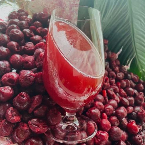 Фруктово-ягодный саур, сброженный бельгийским штаммом дрожжей, со щедрым добавлением пюре чёрной смородины и вишни.