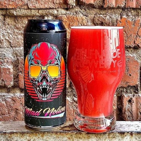 Саур-эль на йогуртовой закваске, охмеленный Cascade и Motueka, с добавлением бананового и клюквенного пюре.