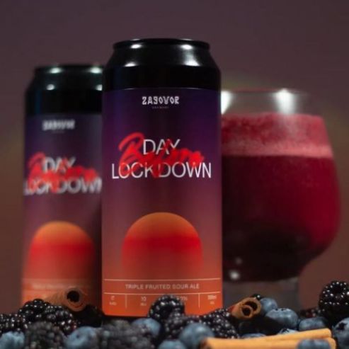 Day Before Lockdown — это кислый эль, сброженный вместе c корицей, лактозой и ягодами вишни, ежевики и голубики, заданными в тройном объеме.