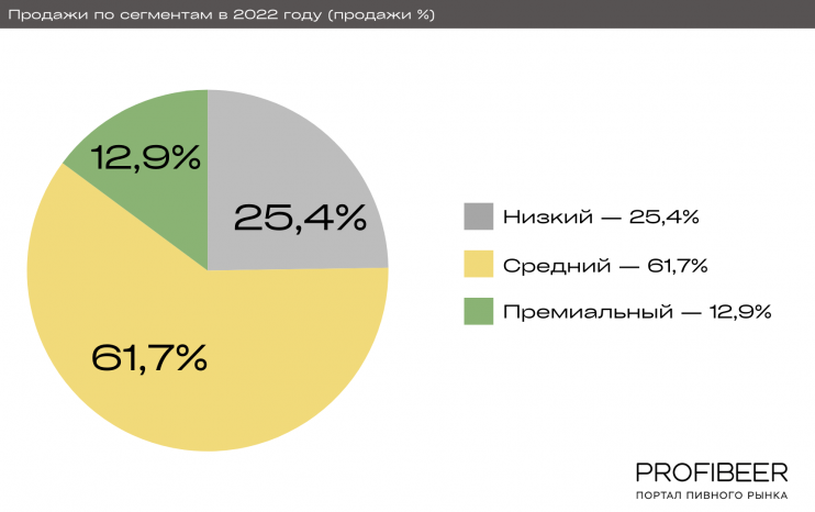 - Индивидуальные особенности: высокое влияние сезонности. Большие объемы пива производителей этого сегмента реализуются летом.