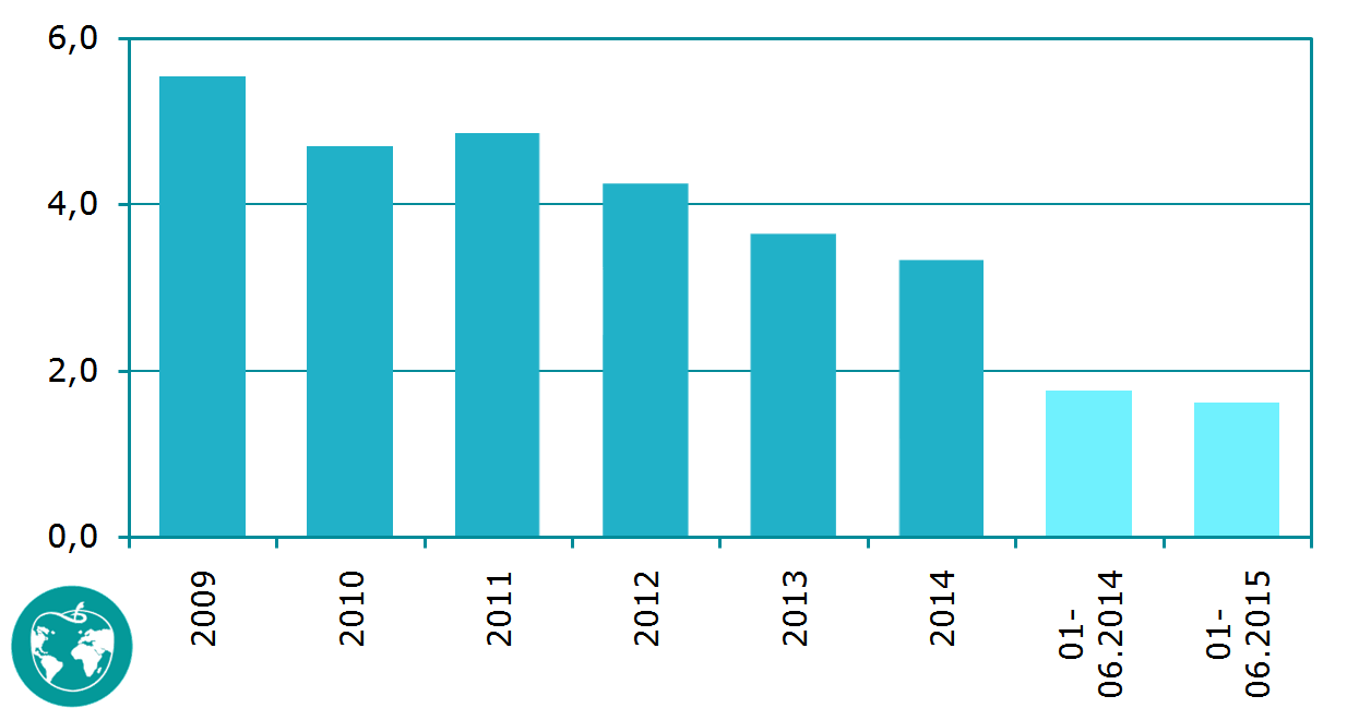 И в 2015 году мы отмечаем обострение взаимодействия пивоваров и стекольщиков, подошедшее к своему пику. Одним из последствий этого стал постепенный отказ от пивного рынка-потребителя некоторыми игроками стеклотарной отрасли — они стали переориентироваться на близкий к нему с точки зрения используемой бутылки рынок воды и напитков. В результате объёмы выпуска бутылки для безалкогольной продукции и доля использования упаковки из стекла на них в последние несколько лет заметно возрастают. С другой стороны, ситуация дошла до того, что стекольщикам становится экономически более целесообразно остановить печь на заводе, чем продолжать пытаться работать с пивным сегментом. В 2013-2015 годах постоянно наблюдаются временные или постоянные остановки стекловаренных печей и производственных линий, ориентированных на выпуск пивной бутылки.